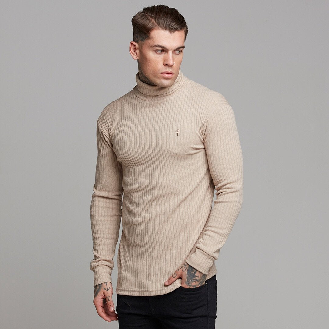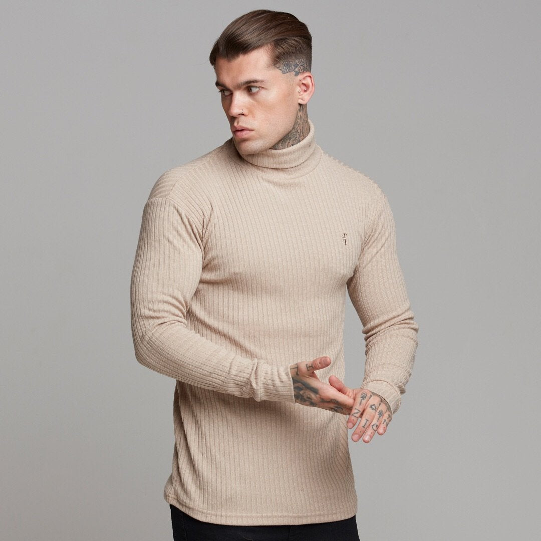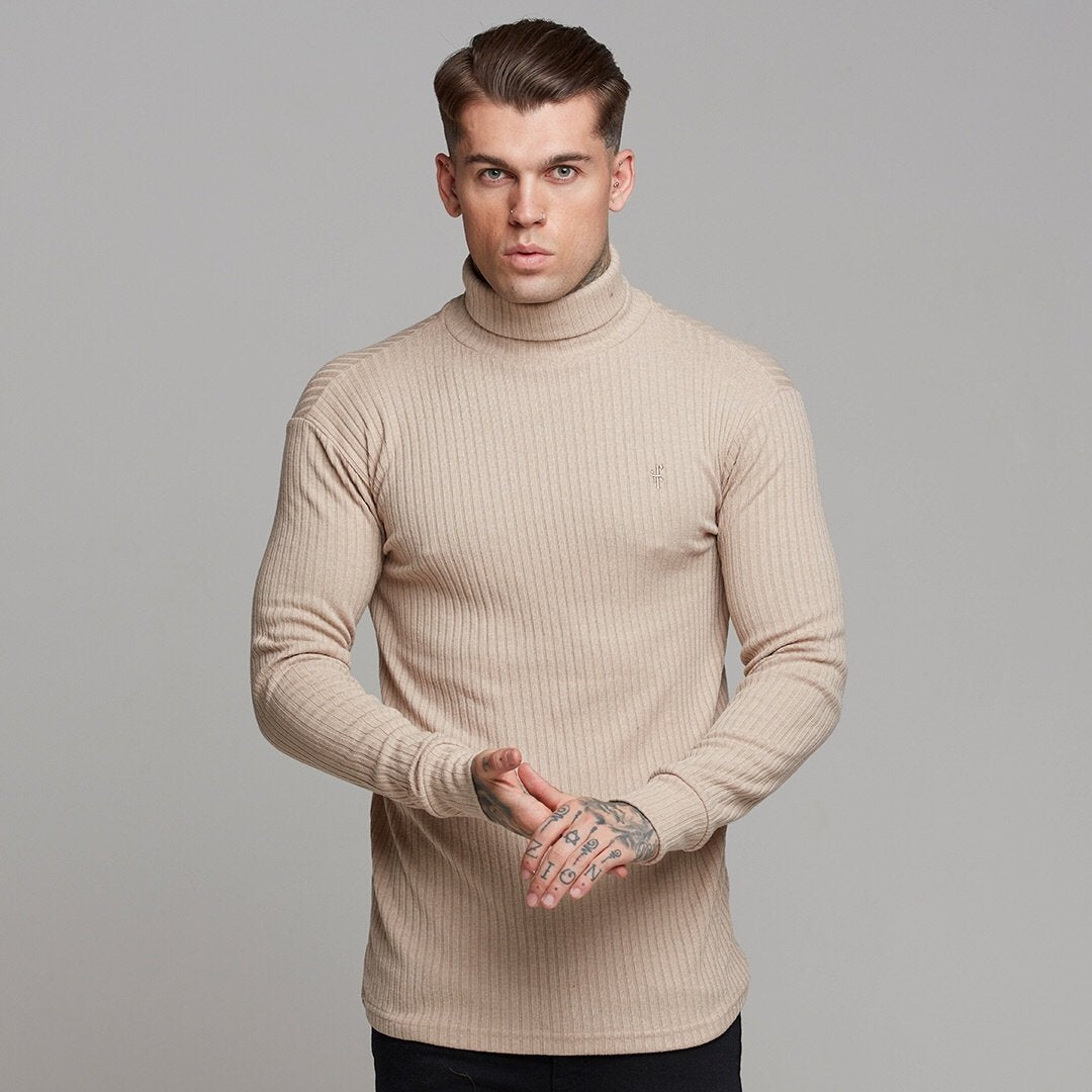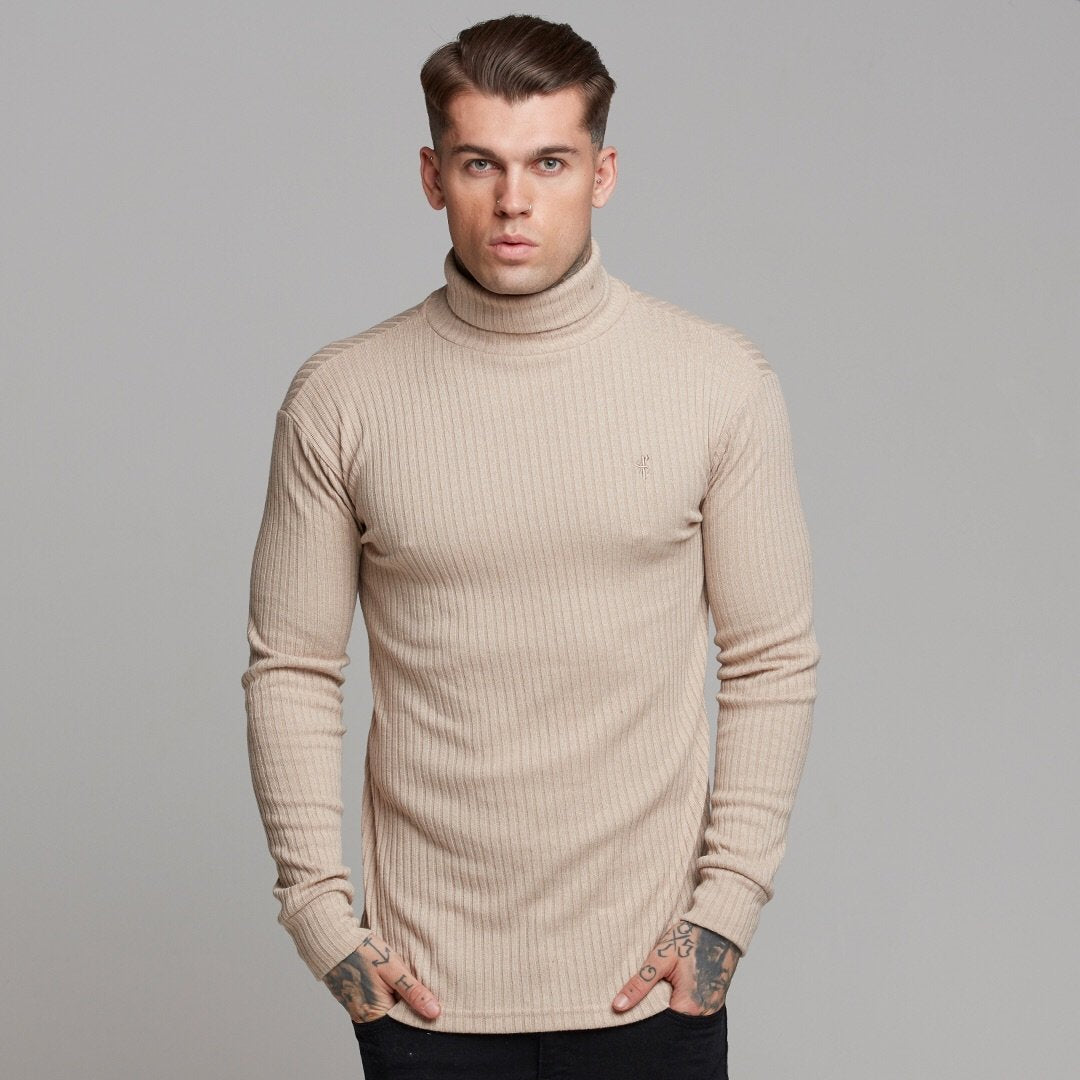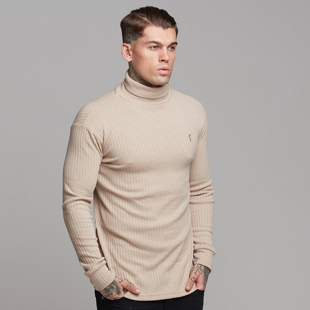 Father Sons Classic Beige Ribbed Knit Roll-neck Jumper - FSH292