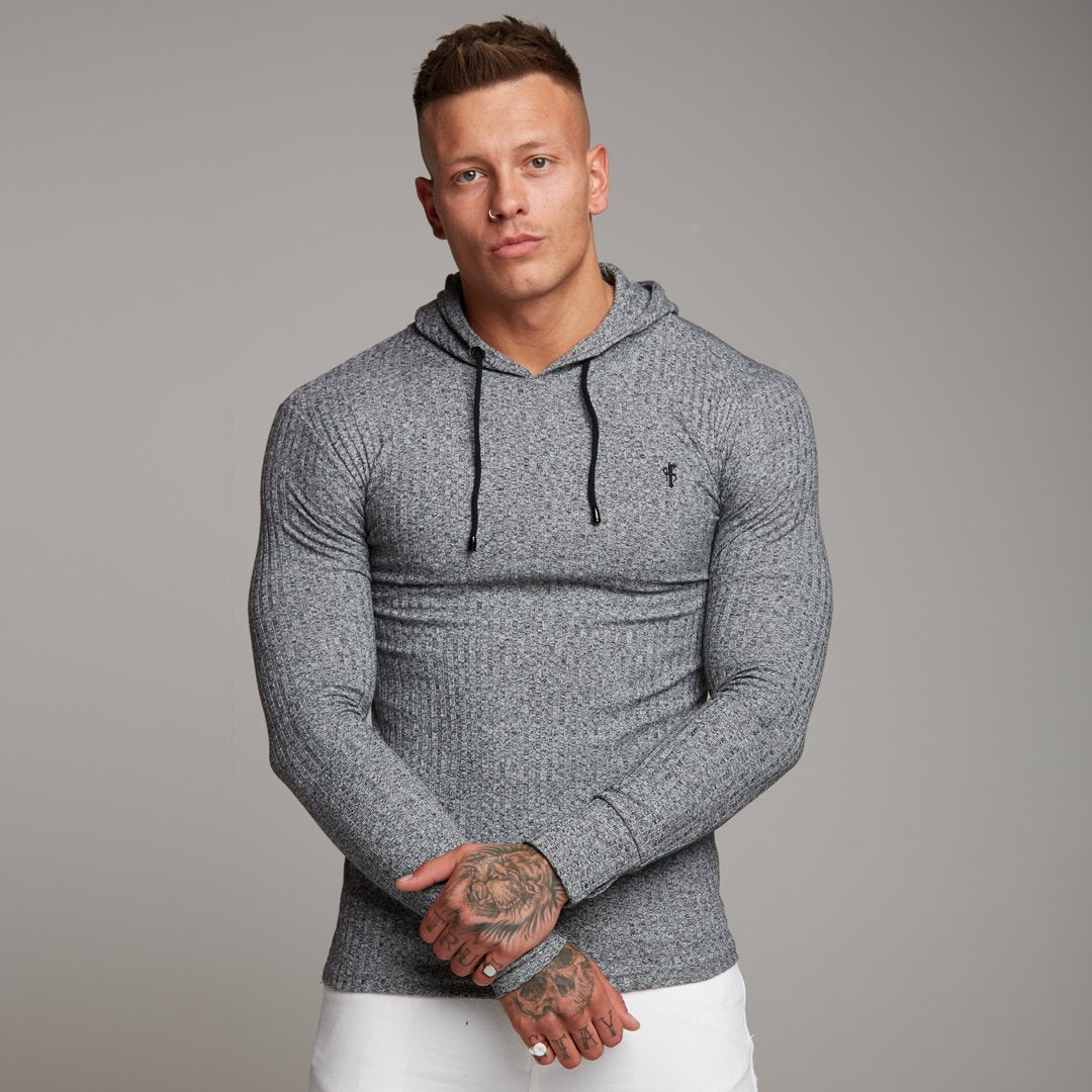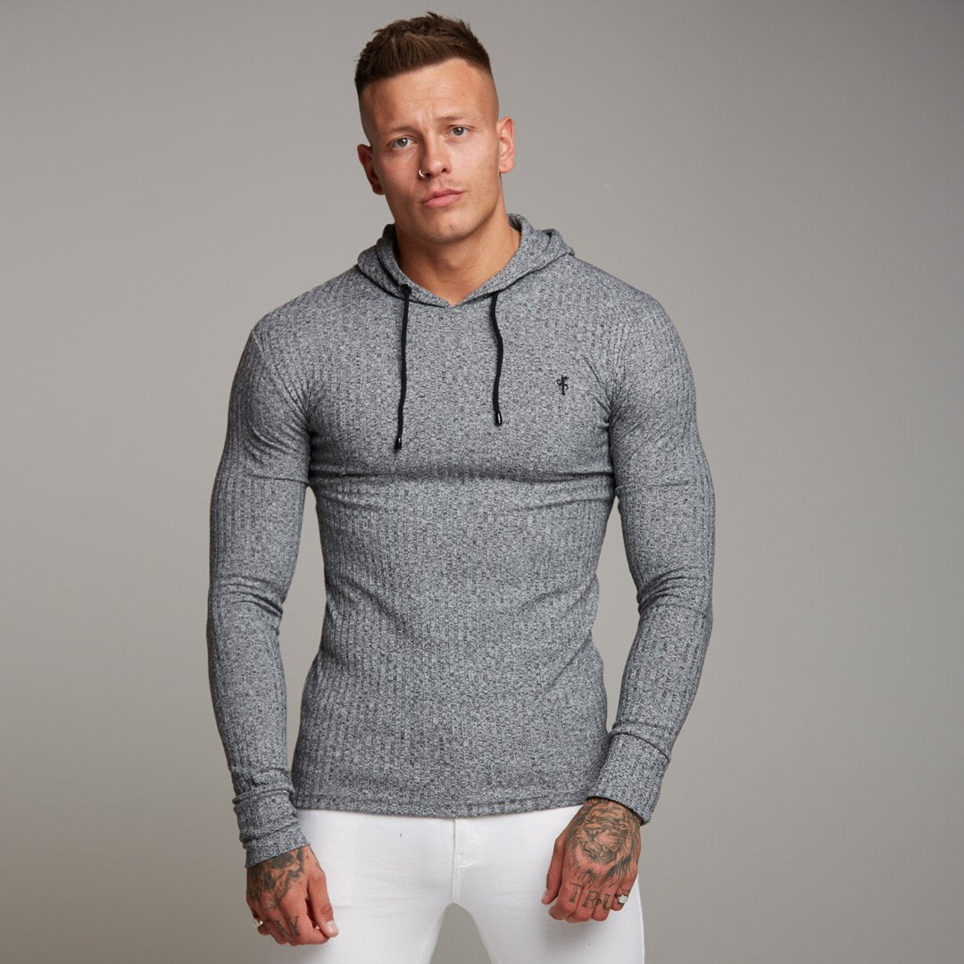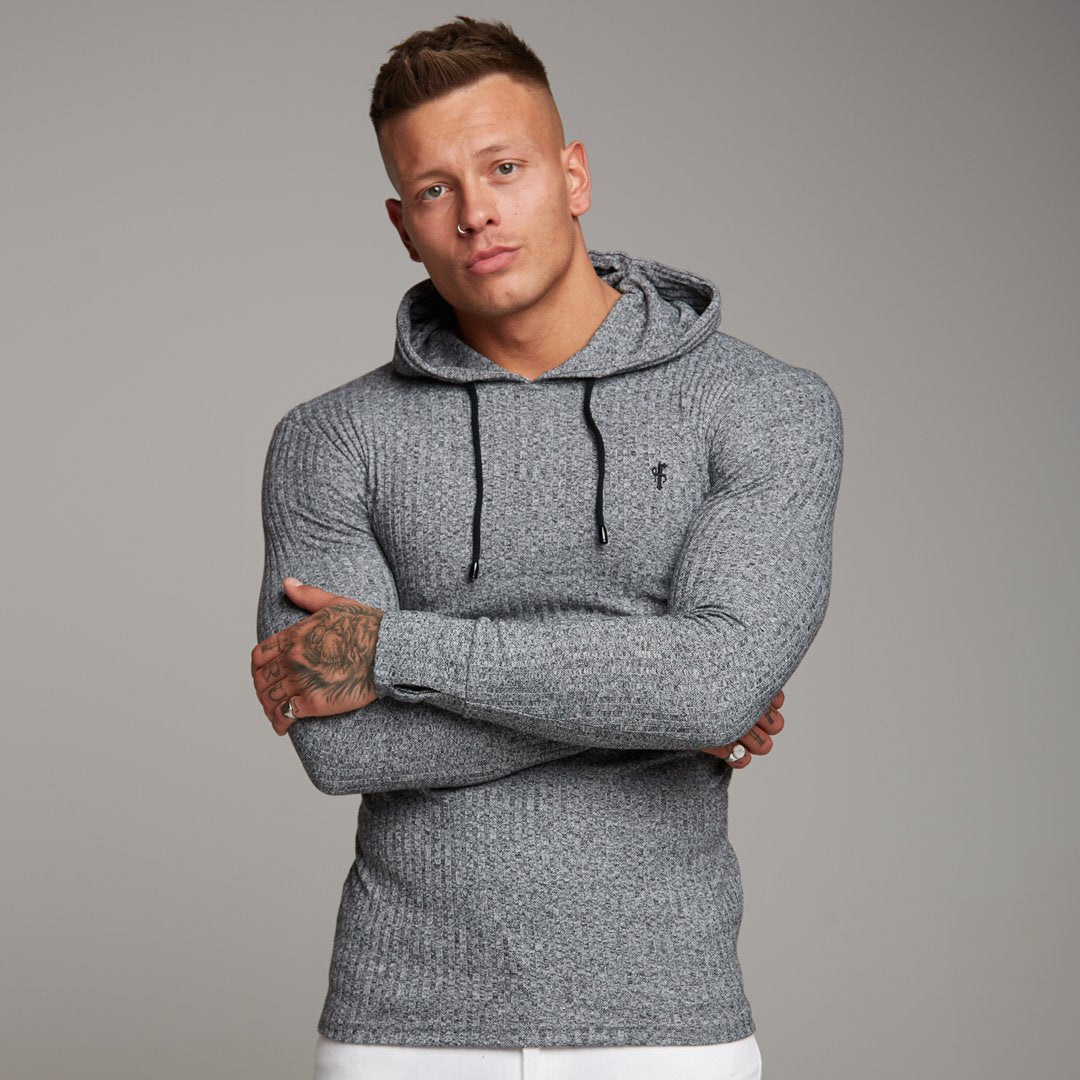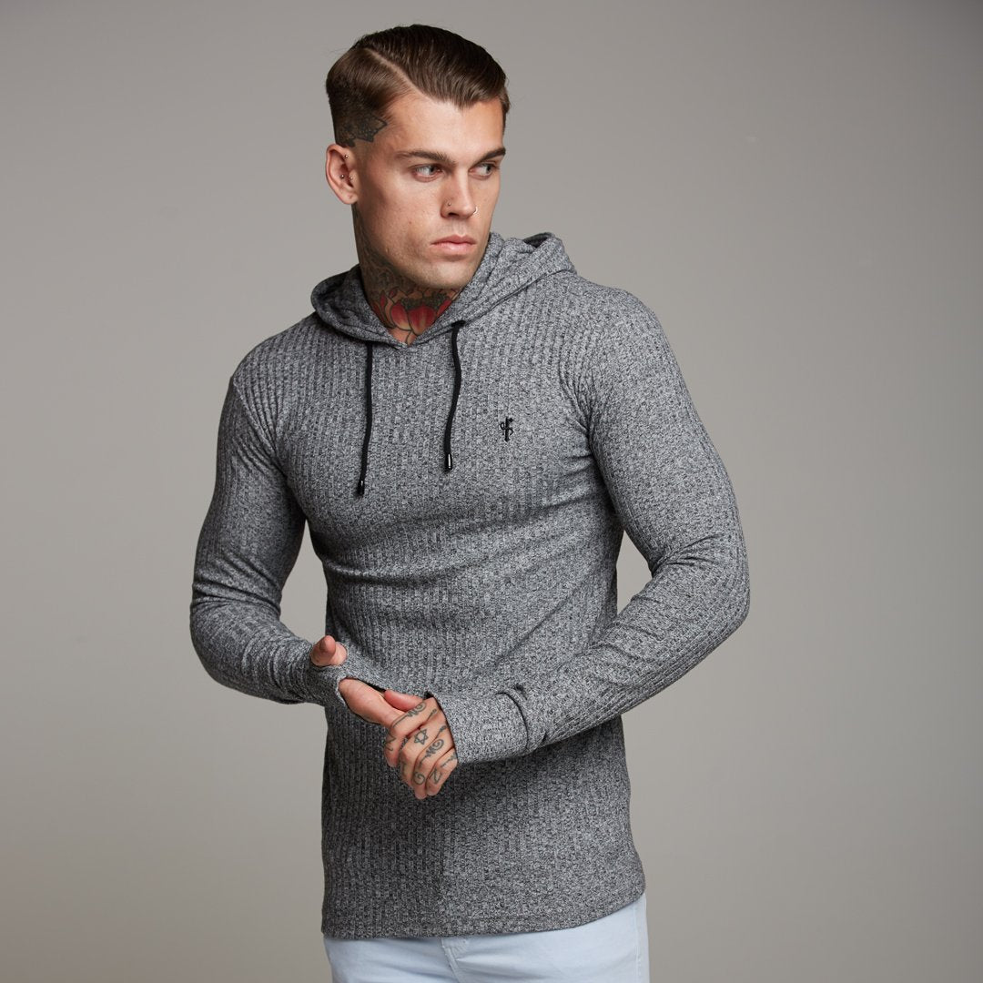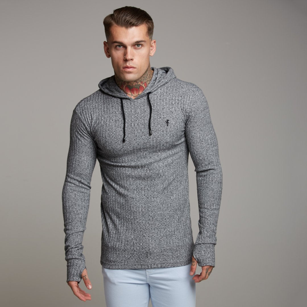 Father Sons Classic Grey & Black Ribbed Knit Hoodie Jumper - FSH174