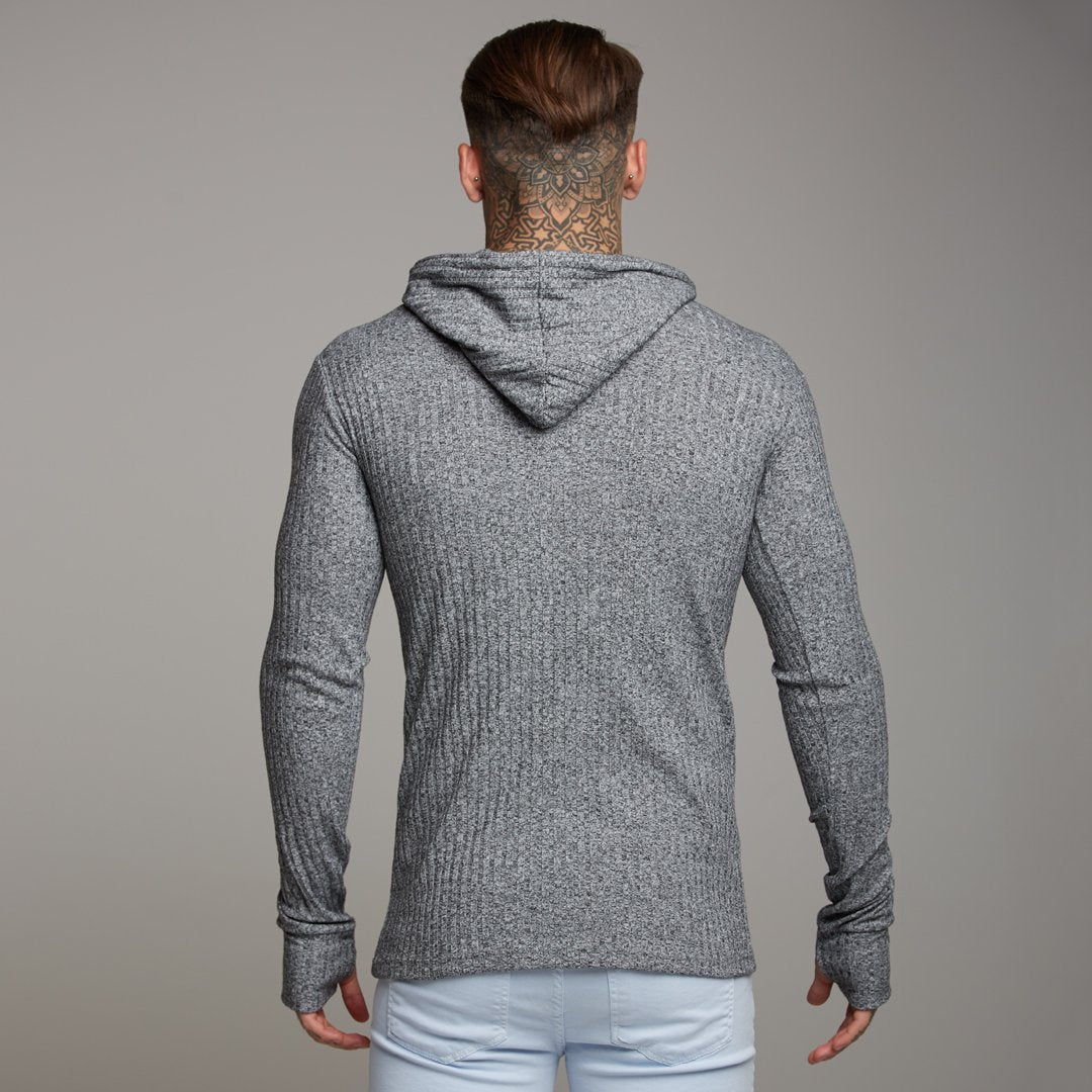 Father Sons Classic Grey & Black Ribbed Knit Hoodie Jumper - FSH174