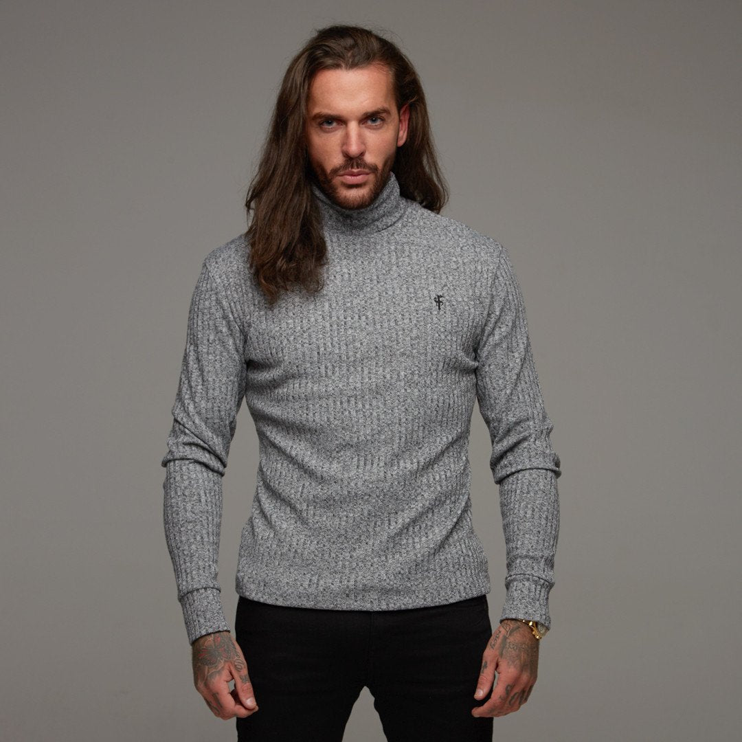 Father Sons Classic Grey & Black Roll Neck Ribbed Knit Jumper - FSH119